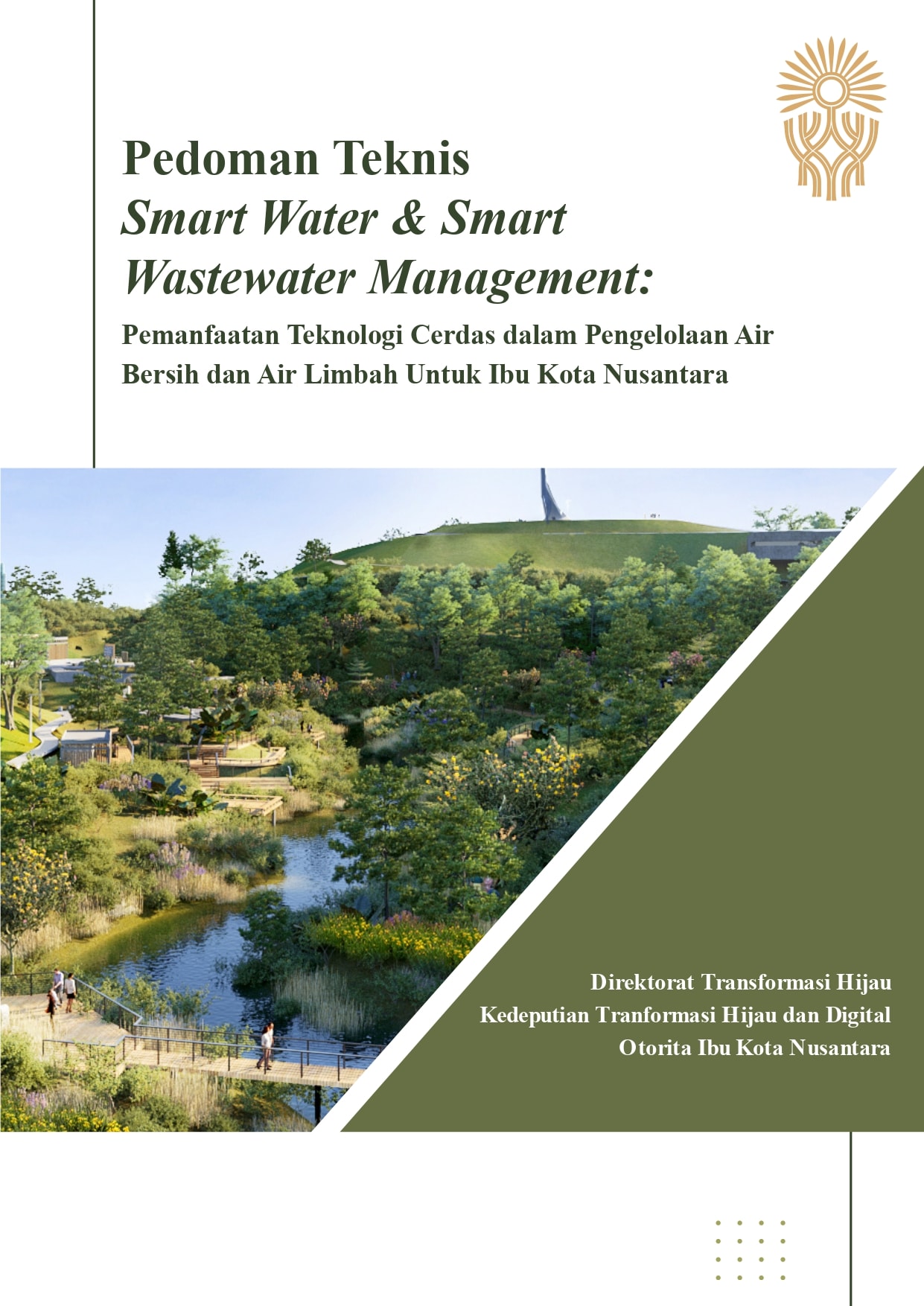 Pedoman Teknis Smart Water dan Waste Water Management merupakan panduan teknis untuk pengelolaan air minum dan air limbah dengan penerapan teknologi cerdas di Ibu Kota Nusantara. Teknologi SCADA (Supervisory Control and Data Acquisition) akan digunakan untuk memantau kualitas air minum dan air limbah. Pemantauan ini dilakukan dengan menggunakan sensor yang dipasang pada Instalasi Pengolahan Air, Instalasi Pengolahan Air Limbah, jaringan distribusi dan transmisi, serta sistem pemantaatan daur ulang air hujan. Dengan demikian, pengelolaan air mulai dari bendungan, intake, reservoir, jaringan transmisi, jaringan distribusi, hingga ke pelanggan dapat berjalan secara optimal.