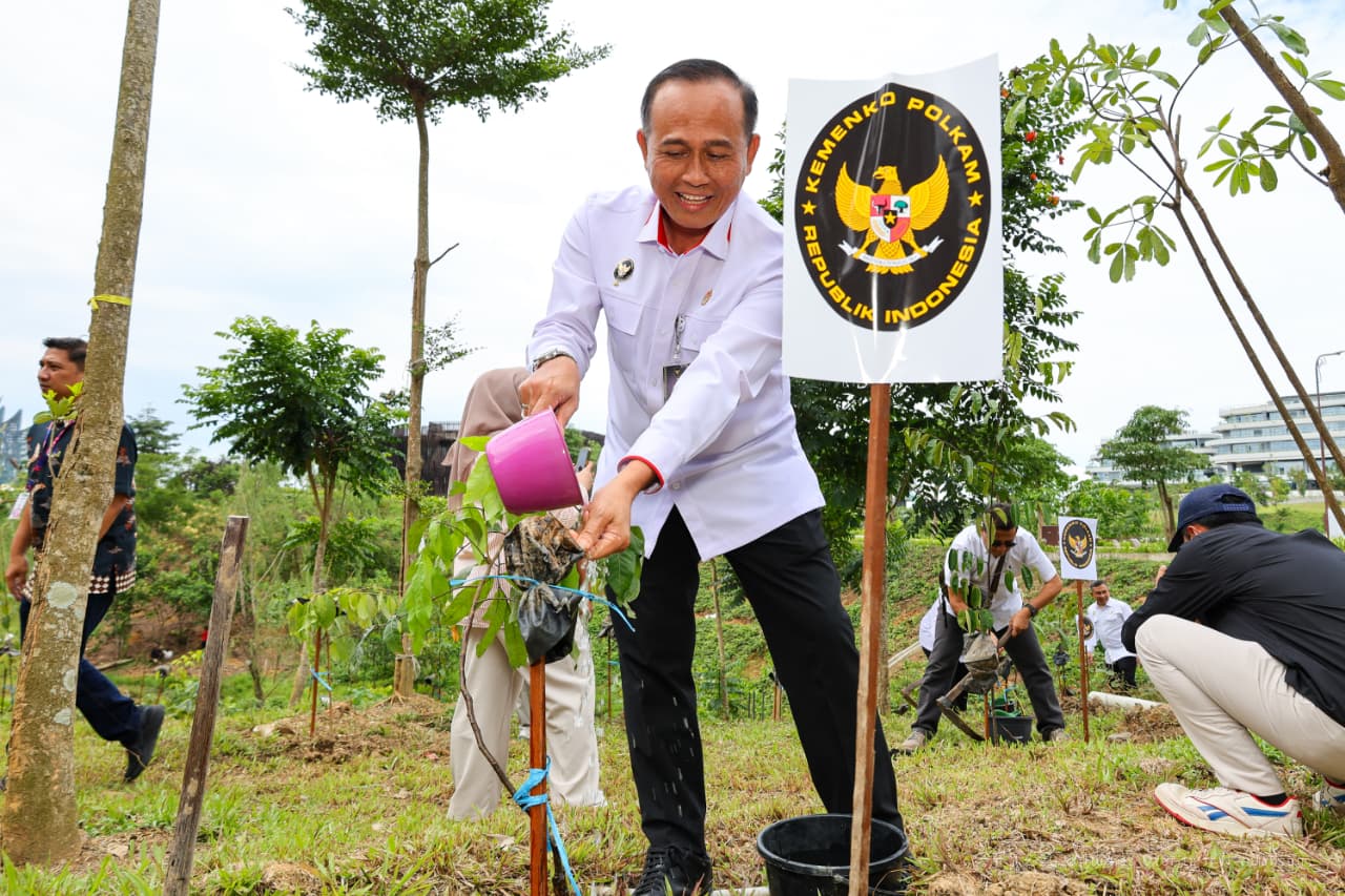 Keterangan: Kemenko Polkam kunjungi berbagai titik strategis jaringan dan telekomunikasi kawasan Nusantara, seperti Data Center dan Command Center Otorita IKN, serta Telkom Smart Office. Kegiatan penanaman pohon endemik di Kemenko 4 menandai sinergi pembangunan antara Kemenko Polkam dan Otorita IKN, Kamis (30/10/2025).